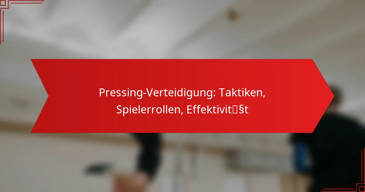 Die Pressverteidigung ist ein strategischer Ansatz, der koordinierte Bewegungen und Positionierungen betont, um den Ballbesitz von den Gegnern zurückzugewinnen. Sie umfasst verschiedene Taktiken, darunter hohes und tiefes Pressing, und erfordert von den Spielern, dass sie ihre spezifischen Rollen verstehen, um die Effektivität zu maximieren. Wenn sie gut ausgeführt wird, kann die Pressverteidigung zu erhöhten Ballverlusten und Scoring-Möglichkeiten führen, obwohl ihr Erfolg je nach Kontext und Umsetzung des Teams variieren kann.