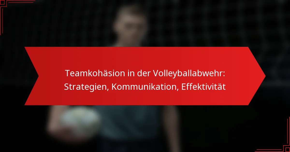 Die Verbesserung der Teamkohäsion in der Volleyballabwehr umfasst die Umsetzung von Strategien, die Teamarbeit, klare Kommunikation und Vertrauen unter den Spielern fördern. Effektive Praktiken beinhalten spezifische Übungen, Formationen und Rollenzuweisungen, die Zusammenarbeit und kontinuierliche Verbesserung unterstützen.